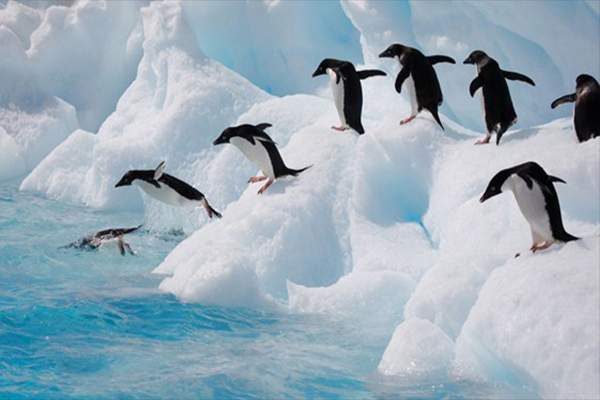 En un momento dado, los pingüinos están ávidos por saltar al agua y pescar alimento, pero son conscientes del peligro que supone la presencia de orcas. Todos los pingüinos se apelotonan al borde de la plataforma de hielo y no es hasta que uno de ellos salta al agua y evalúa la ausencia de peligro, que los demás le siguen.